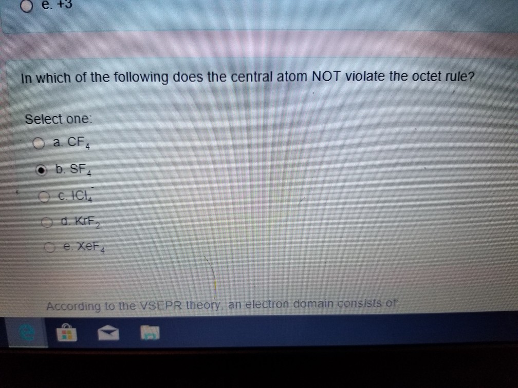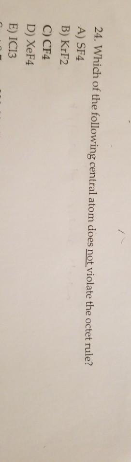 The octet rule states that elements tend to prefer to have eight electrons in their valence shell. The Central Atom In A SF4 B KrF2 C CF D XeF4 Does Net Violate The Octet Rule.